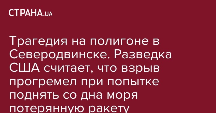 Трагедия на полигоне в Северодвинске. Разведка США считает, что взрыв прогремел при попытке поднять со дна моря потерянную ракету