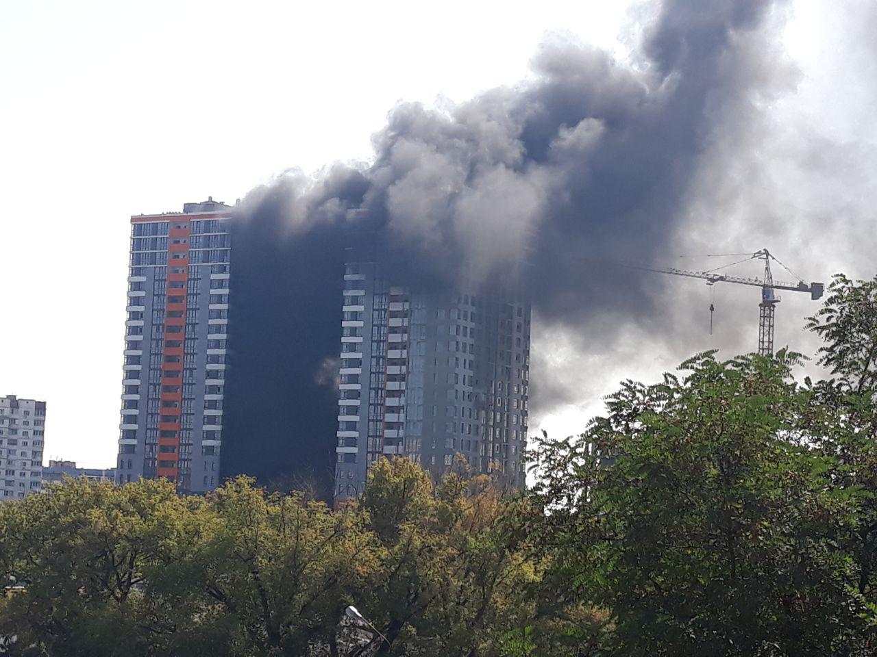 В Киеве на Оболони вспыхнула многоэтажка. Фото, видео