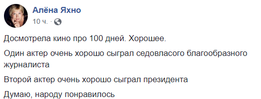 Второй актер очень хорошо сыграл президента. Думаю, народу понравилось", - отмечает блогер Алена Яхно.