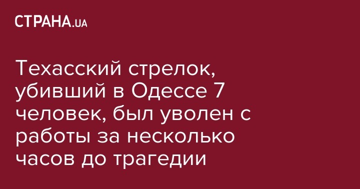 В истории с очередной бойней в США появились новые детали. Как оказалось, Сет Этор, застреливший как минимум 7 человек в американском городе Одесса (штат Техас - Ред.), был уволен за несколько часов до трагедии.