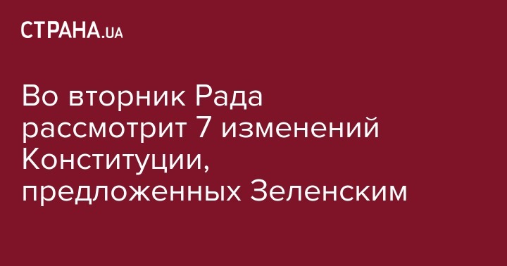 Во вторник Рада рассмотрит 7 изменений Конституции, предложенных Зеленским