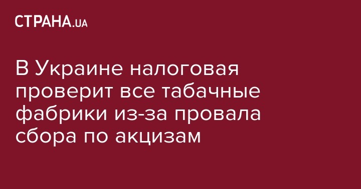 В период с января по июль 2019 года невыполнение сбора акцизов составило 8,8 млрд грн и большая часть этого недобора приходится на акциз табачных изделий, по этой причине налоговая служба запланировала проверки всех табачных производителей в Украине. Об этом в интервью Экономической правде рассказал глава ведомства Сергей Верланов.