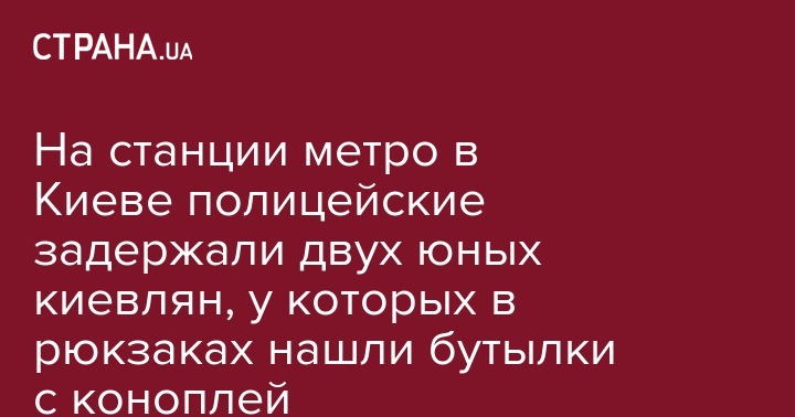 В Киеве на станции метро "Вокзальная" полицейские задержали двоих молодых людей, у которых в рюкзаках была конопля в пластиковых бутылках. Об этом сообщает Отдел коммуникации столичной полиции