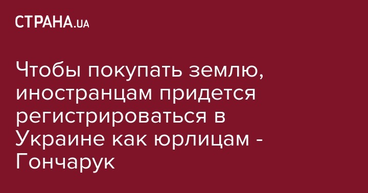 Он заявил, что иностранные граждане и компании смогут купить земельный участок только после регистрации юридического лица в Украине. Об этом Алексей Гончарук сообщил в прямом эфире программы "Свобода слова" на телеканале ICTV.