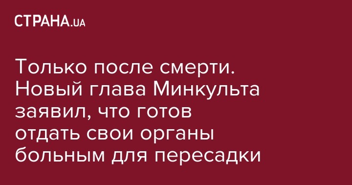 Министр культуры, молодежи и спорта Украины Владимир Бородянский заявил о готовности стать донором органов. Также он задал такой вопрос присутствующим на встрече по разработке гуманитарной стратегии для представителей благотворительных фондов и общественных организаций: "Если мы будем в состоянии, когда больше не сможем жить, готовы будем отдать свои органы, чтобы спасти других?".