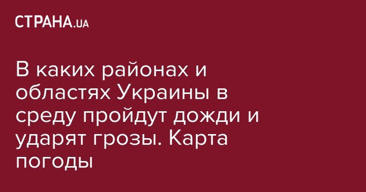 В каких районах и областях Украины в среду пройдут дожди и ударят грозы. Карта погоды