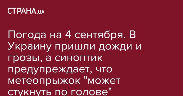 Погода на 4 сентября. В Украину пришли дожди и грозы, а синоптик предупреждает, что метеопрыжок "может стукнуть по голове"