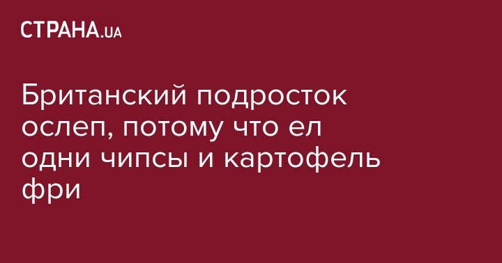 Британский подросток, который в течение многих лет употреблял в пищу только чипсы и картофель фри, потерял зрение. Об этом сообщает ВВС Украина.