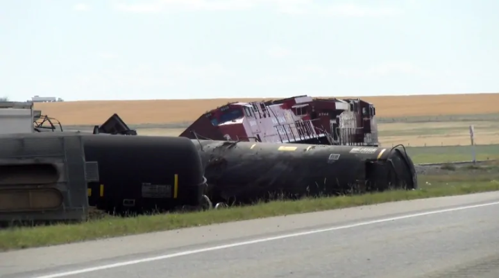 Инцидент произошел рядом с городом Баронс. С колеи сошел 21 вагон и локомотив. В трех вагонах находился октан, который начал вытекать на землю.