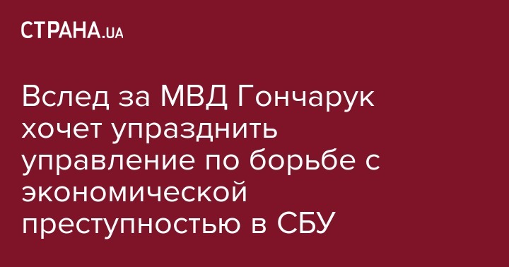 Вслед за МВД Гончарук хочет упразднить управление по борьбе с экономической преступностью в СБУ
