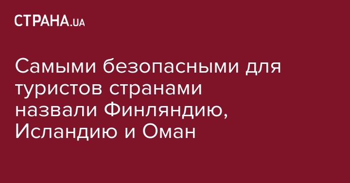 Эксперты Всемирного экономического форума (WEF) назвали самые безопасные для туристов страны мира. Первые места по этому показателю заняли Финляндия, Исландия и Оман. Об этом сообщает Интерфакс-Украина.