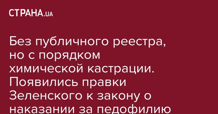 Без публичного реестра, но с порядком химической кастрации. Появились правки Зеленского к закону о наказании за педофилию