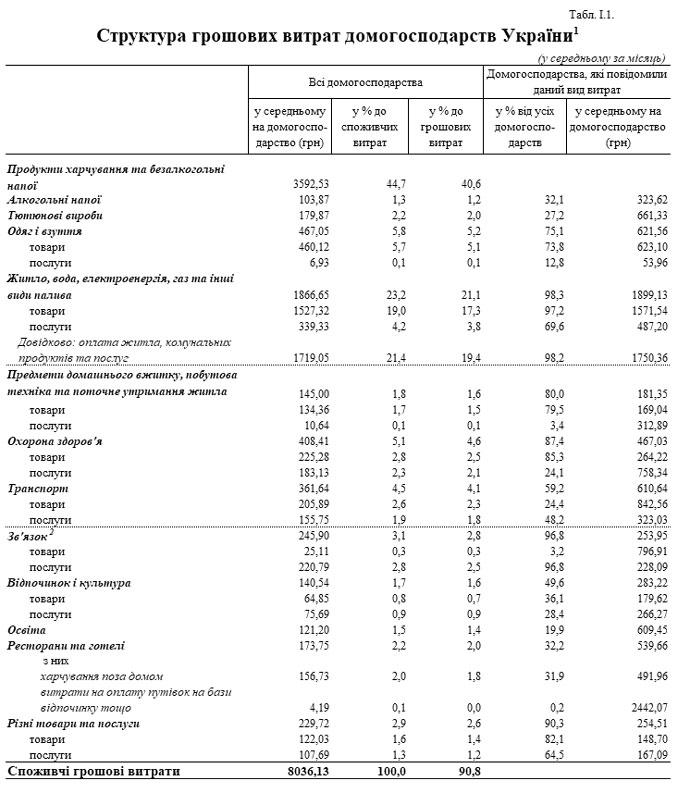В среднем потребительские денежные расходы украинцев составляют 8036 гривен в месяц.