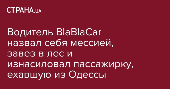 В конце августа водитель BlaBlaCar изнасиловал попутчицу, которую через сервис нашел в качестве попутчицы из Одессы в Черкассы. Об этом сообщила подруга потерпевшей Анастасия Липинская в Facebook.