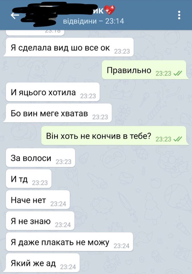 Когда они подъехали к Смеле, водитель, не дожидаясь, пока девушка потеряет сознание, отвез пассажирку в лес и, угрожая ножом, изнасиловал ее. После этого он довез девушку до Черкасс. Оказавшись в городе, она обратилась в полицию и написала заявление об изнасиловании. По словам подруги пострадавшей, она предоставила правоохранителям всю информацию о насильнике, включая полное имя, фото, марку и номер машины.