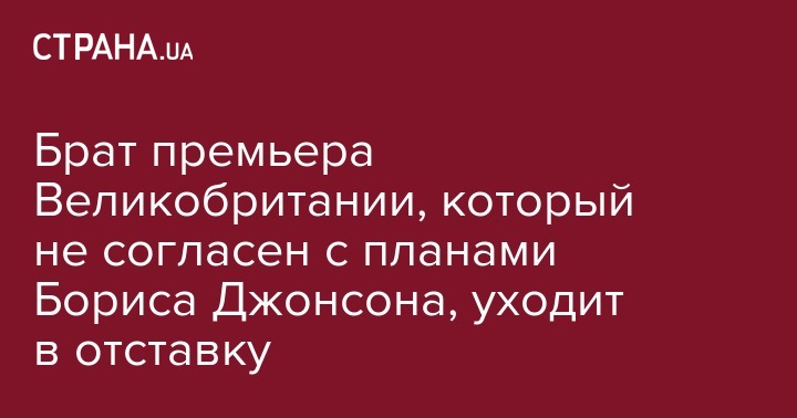 Младший брат премьер-министра Великобритании Джо Джонсон заявил, что уходит с занимаемых им должностей младшего министра по делам университетов и науки, а также депутата британского парламента. Об этом он сообщил в Twitter.