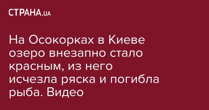 В Киеве на Осокорках озеро внезапно поменяло цвет и стало красным. Только за одну ночь с поверхности озера исчезла вся ряска, а к берегу прибило дохлую рыбу. Об этом идет речь в сюжете ТСН.