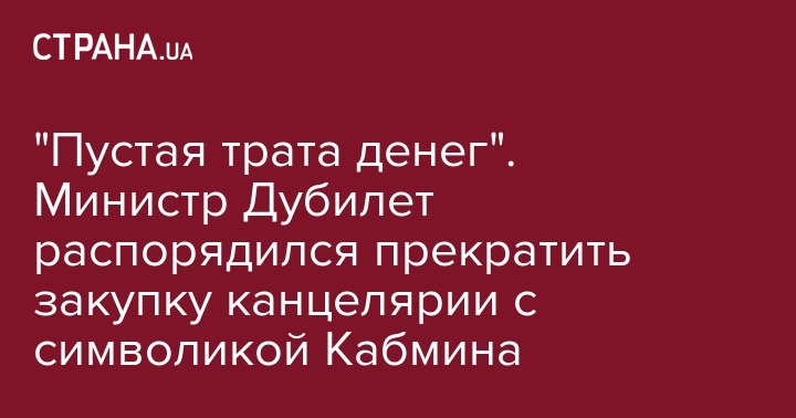 Министр Кабинета министров Дмитрий Дубилет поручил прекратить закупку секретариатом правительства канцелярских предметов с символикой Кабмина. Об этом он сообщил на своей странице в Instagram.