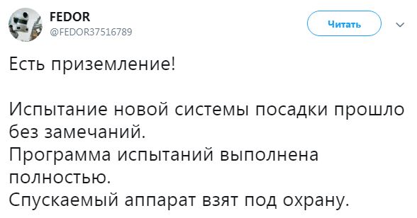 "Аппарат взят под охрану". Российский робот Федор вернулся на Землю с МКС