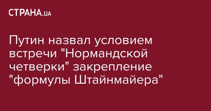 Путин назвал условием встречи "Нормандской четверки" закрепление "формулы Штайнмайера"