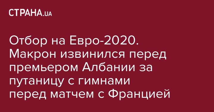Президент Франции Эммануэль Макрон извинился перед премьер-министром Албании Эди Рамой за ошибку с гимном перед матчем отборочного этапа чемпионата Европы 2020 года. Об этом сообщает канал RMC Sport.