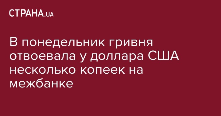 В понедельник гривня отвоевала у доллара США несколько копеек на межбанке
