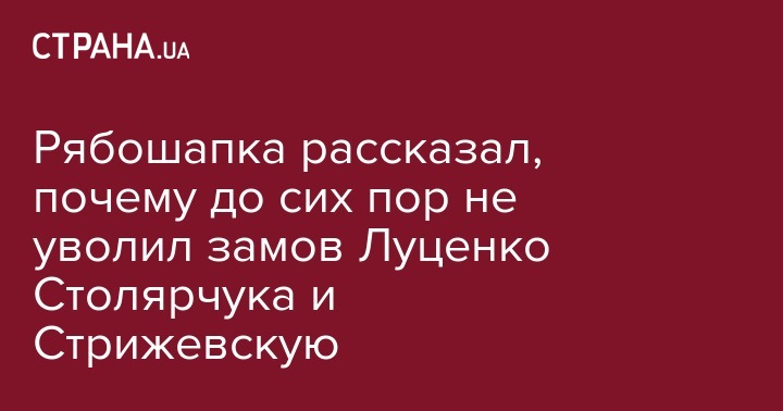Увольнение Стрижевской и Столярчука, по словам Рябошапки, несколько откладывается по процедурным причинам. Генпрокурор отметил, что были "сложные коммуникации с Юрием Васильевичем (Столярчуком - Ред.)".
