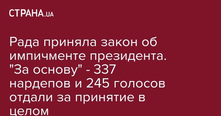 "За" принятие этого документа за основу проголосовало 337 народных избранников. А за принятие закона в целом голоса отдали 245 нардепов. Стоит отметить, что после начала работы парламента в зале зарегистрировалось 365 народных депутатов.