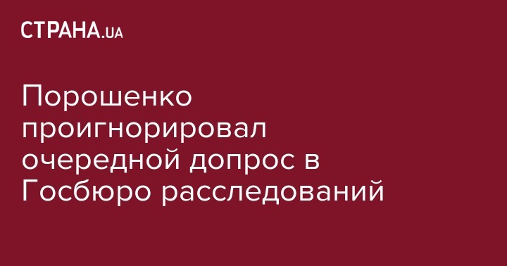 Пятый президент Украины Петр Порошенко снова не пришел в Государственное бюро расследований на допрос, который был назначен на 10 сентября. Об этом сообщила пресс-секретарь ГБР Анжелика Иванова.