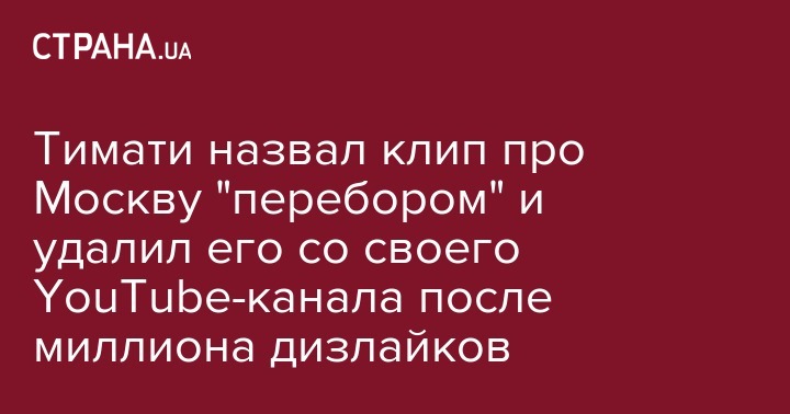 Тимати назвал клип про Москву "перебором" и удалил его со своего YouTube-канала после миллиона дизлайков