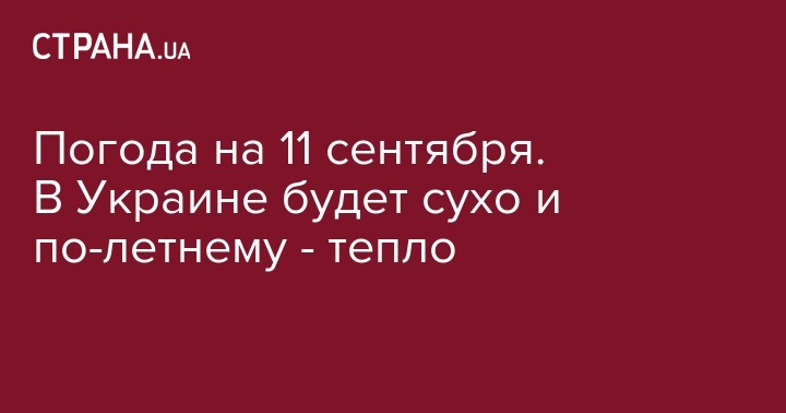 Погода на 11 сентября. В Украине будет сухо и по-летнему - тепло
