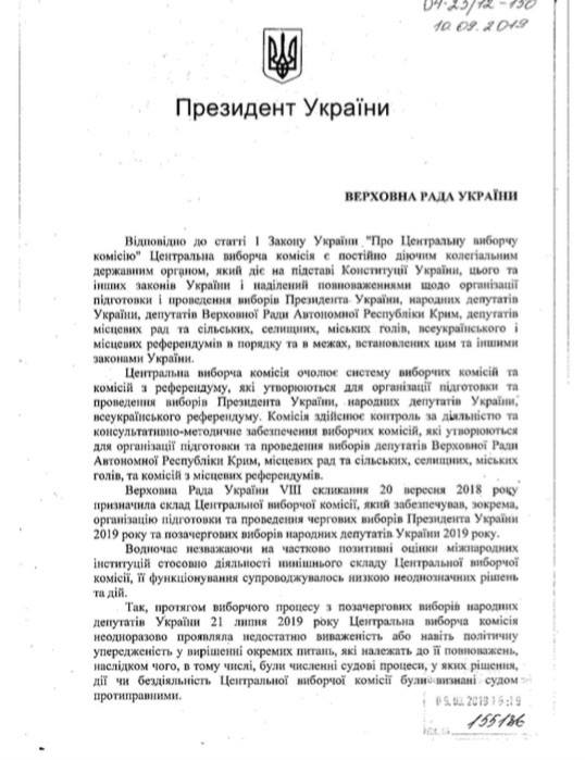 Согласно Закону о Центральной избирательной комиссии Украины, полномочия всего состава ЦИК могут быть досрочно прекращены парламентом по мотивированному представлению президента Украины. Решение Рада, согласно закону, должна принять не менее чем двумя третями от ее конституционного состава (то есть в 300 депутатов). Закон предписывает, что фракции не позднее следующего дня должны будут подать президенту свои кандидатуры на должности новых членов ЦИК. А потом президенту дается еще 3 дня на внесение кандидатур в Раду.