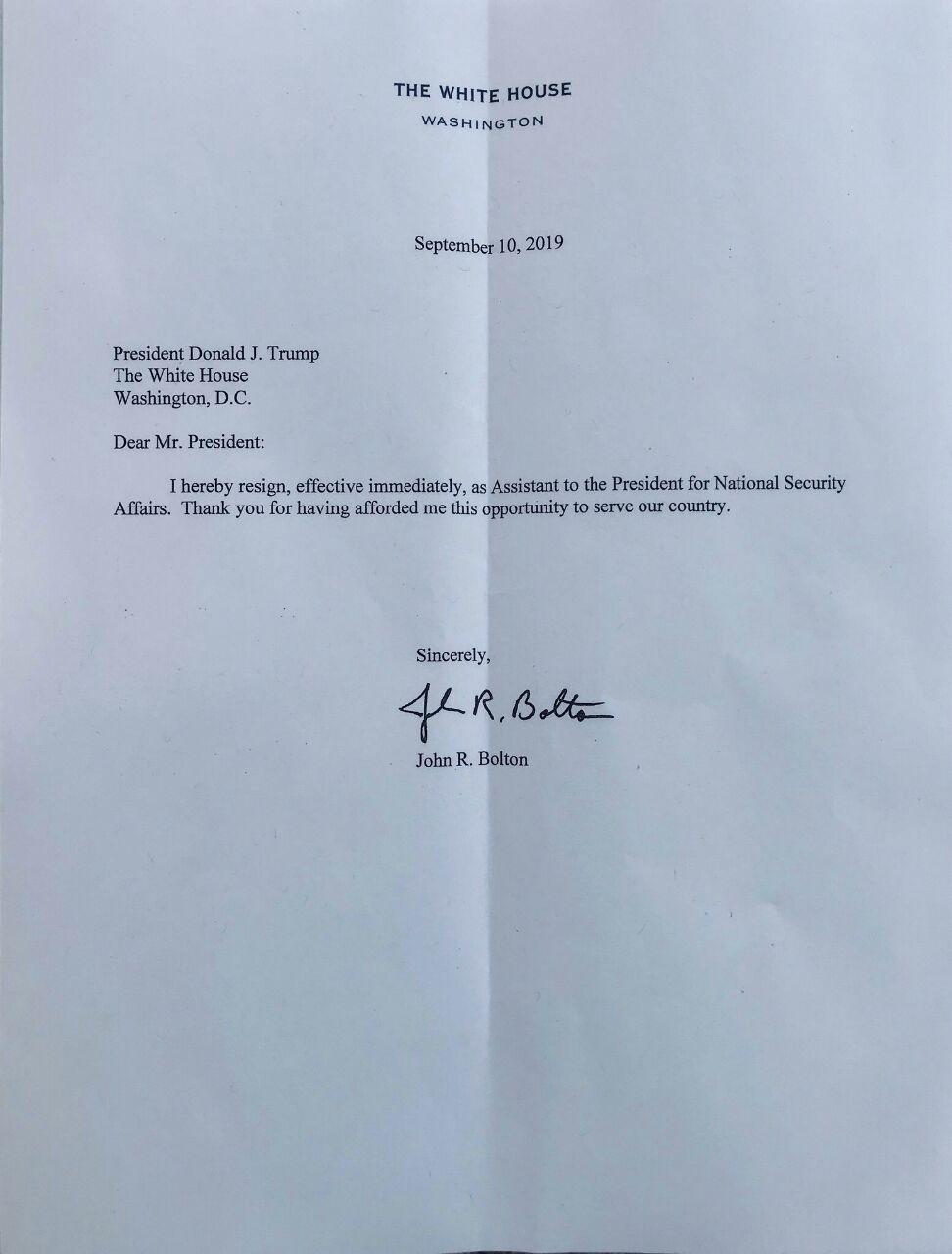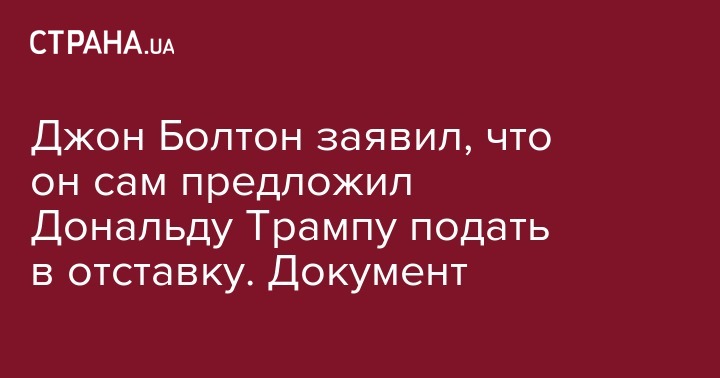 Советник президента США по нацбезопасности Джон Болтон во вторник заявил, что в беседе с Дональдом Трампом сам предложил подать в отставку. Об этом Болтон написал в Twitter.