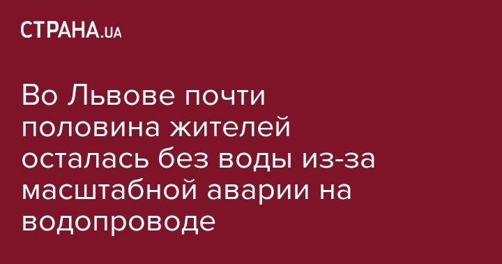 Во Львове в среду, 11 сентября, случилась масштабная авария на водопроводе, без воды остаются около 300 000 человек из 700 000 проживающих в городе. Об этом сообщает пресс-служба Львовского горсовета
