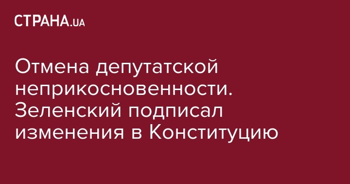 В среду, 11 сентября, президент Украины Владимир Зеленский подписал закон №7203 об отмене депутатской неприкосновенности с 1 января 2020 года. Об этом сообщается на сайте главы государства.