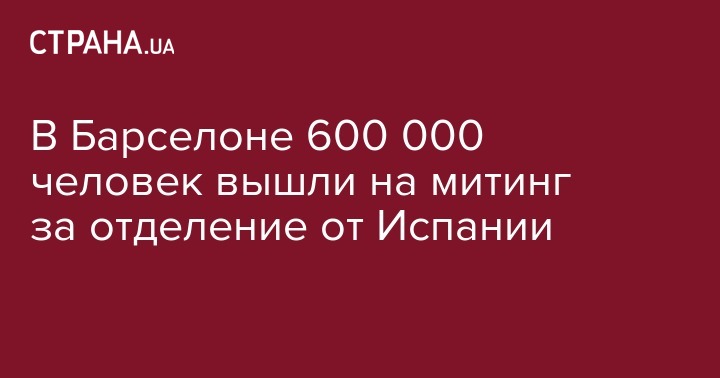 Вчера, 11 сентября, в национальный день автономии, в Барселоне, на митинг за отделение Каталонии от Испании, вышли около 600 000 человек. Об этом передает агентство Associated Press со ссылкой на данные полиции.