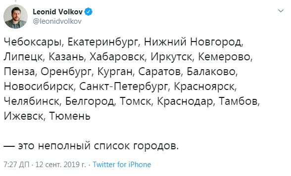 Утром в четверг, 12 сентября, в трех десятках городов России начались обыски в штабах сторонников оппозиционного политика Алексея Навального. Об этом написал в Twitter глава сети штабов Леонид Волков.