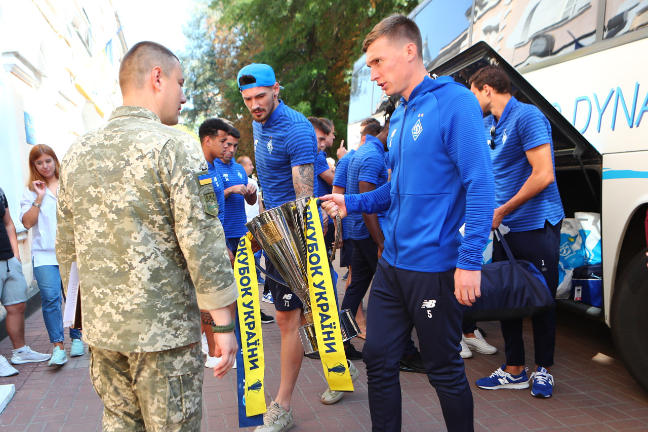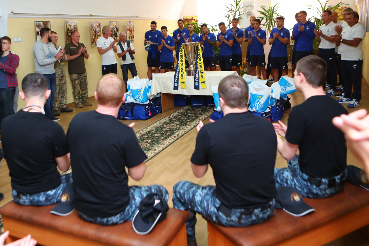 В центральный военный госпиталь приехала основа Динамо в полном составе за исключением игроков сборных, а также тренерский штаб "бело-синих" во главе с Алексеем Михайличенко. Вместе с командой в госпиталь приехал и легендарный игрок киевского клуба Владимир Мунтян, а также представители фан-клуба.