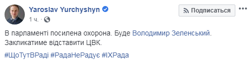 "Рассмотрение вопроса (о смене состава ЦИК - Ред.) переносится до времени их нахождения. Как механизм убеждения используется виртуальный распределение должностей в новом ЦИК. Говорят, проголосуйте за отставку этого и будете иметь 1-2-3 представителя в новом. В этом весь абсурд политизации процедуры формирования "независимого" администратора (выборов - Ред.). И еще больший абсурд, нарушения по поводу срока, на который избирается ЦИК - 7 лет. Действующий состав работает только год ...", - также отмечается на фб-странице Юрчишина.
