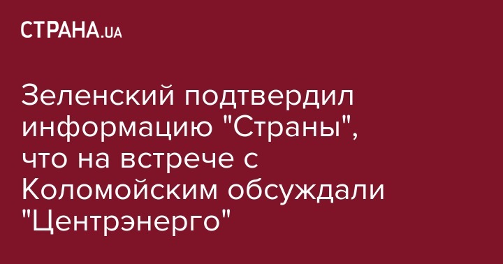 Зеленский подтвердил информацию "Страны", что на встрече с Коломойским обсуждали "Центрэнерго"