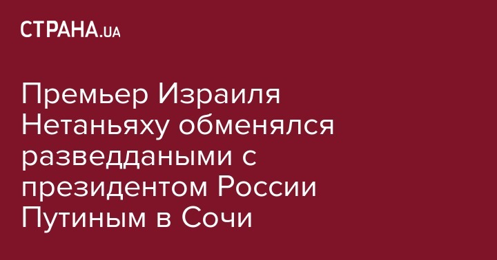 Премьер-министр Израиля Беньямин Нетаньяху сообщил, что на встрече с президентом России Владимиром Путиным они обменялись стратегически важными разведданными.