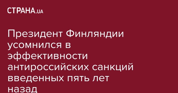 Президент Финляндии Саули Ниинисте выразил сомнения в эффективности европейских санкций. Об этом он сообщил  на открытии ежегодного форума Ялтинской европейской стратегии (YES), передает "Интерфакс-Украина".