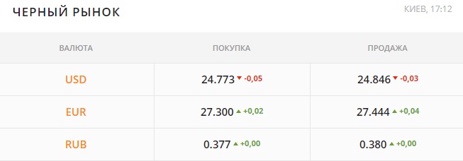 А вот на расценки на черном рынке росли уверенно. Утром приобрести доллар здесь можно было в среднем по 24-78-24,80 грн./$. К вечеру курс покупки менялы подняли до 24,83-24,88 грн./$. Покупали «американца» в диапазоне 24,80-24,82 грн./$.
