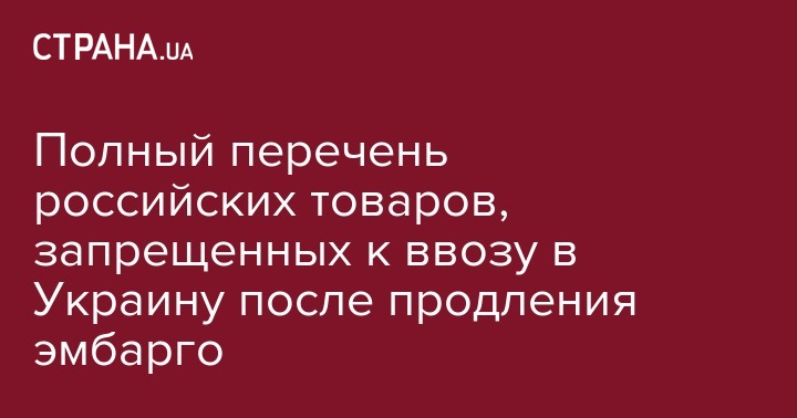 Итак, вот полный перечень российских товаров, которые запрещено ввозить в Украину: