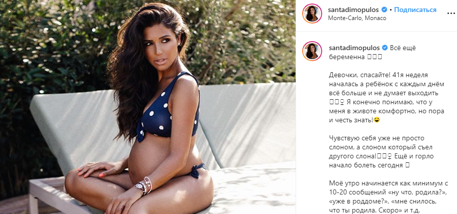 Отметим, что для 32-летней девушки это была трудная беременность. Санта родила дочку уже на 41-й неделе. Вес малышки составил внушительные 4,170 грамм. Ранее она в соцсетях спрашивала, как же ей ускорить роды.