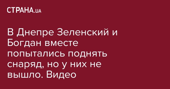 В Днепре Зеленский и Богдан вместе попытались поднять снаряд, но у них не вышло. Видео