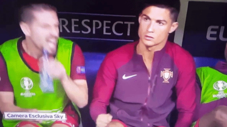 После своего выноса с поля Роналду едва не сломал ногу Силве на скамейке запасных