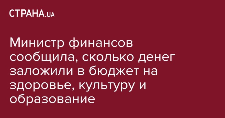 В проекте государственного бюджета на 2020 год на здравоохранение предусмотрено 108 млрд гривен, на образование - 136,4 миллиарда, на развитие культуры и информационной деятельности - 8,6 миллиарда гривень.