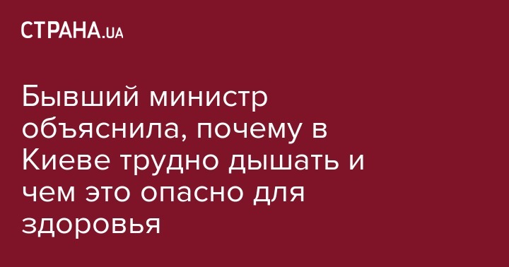 Бывший министр здравоохранения Украины Ульяна Супрун сообщила, что в Киеве становится все опаснее дышать, и причин этому может быть несколько.