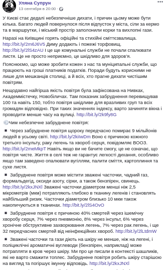Бывший министр сообщила, чем опасен загрязненный воздух и как бороться с загрязнением на своей странице в Facebook. Она сослалась на "Удобный Киев" и "Saveecobot", которые собирали и анализировали данные.